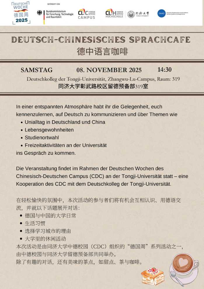 Die Veranstaltung findet im Rahmen der Deutschen Wochen des Chinesisch-Deutschen Campus (CDC) an der Tongji-Universität statt – eine Kooperation des CDC mit dem Deutschkolleg der Tongji-Universität.