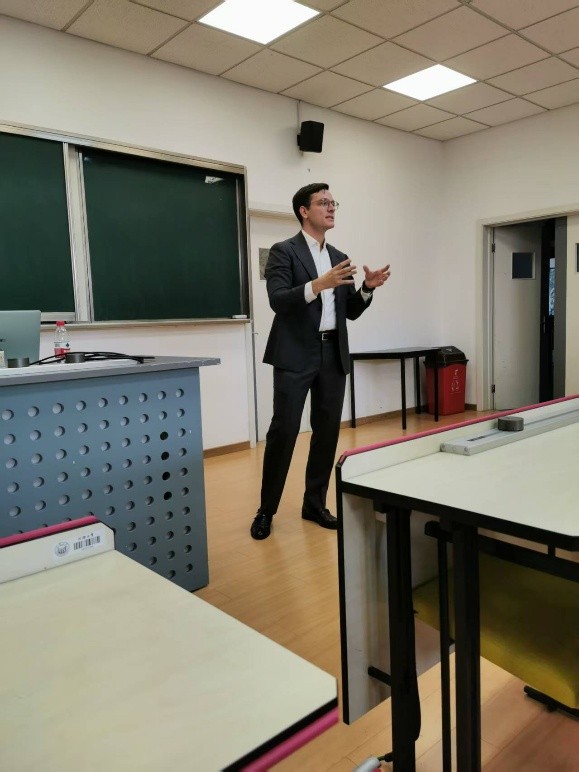 Am Samstagvormittag trafen sich im Rahmen des Vortrags „Gesellschaft im Spiegel des Rechts – Was tun, wenn vor uns ein Unfall geschieht?“ zahlreiche chinesische und deutsche Studierende. Darunter waren viele Teilnehmende aus dem neuen Doppelbachelor- sowie dem lang etablierten Doppelmasterprogramm der Tongji-Universität, aber auch interessierte Gäste anderer Hochschulen. Die Veranstaltung machte deutlich, wie eng Recht und gesellschaftliche Werte miteinander verbunden sind und dass rechtliche Entscheidungen stets auch kulturell geprägt werden. Ausgehend von alltäglichen Fällen im Verkehrsrecht entwickelte sich ein lebhafter interkultureller Austausch über Lebensrealitäten, Denkweisen und Vorstellungen von Recht in beiden Ländern.